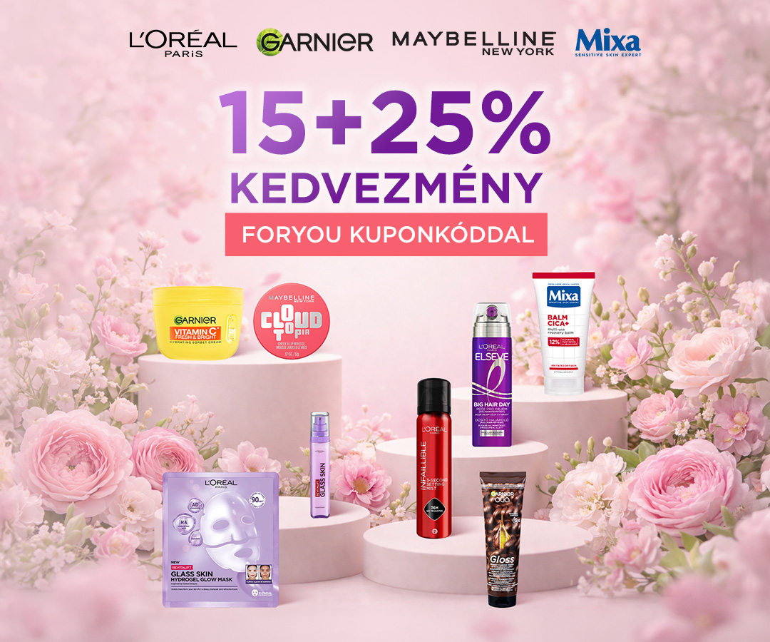 Most minden L'Oréal Paris, Maybelline, Garnier és Mixa termékre a 15%-os kedvezményes Online árat kiegészítjük további 25% kupon kedvezménnyel.