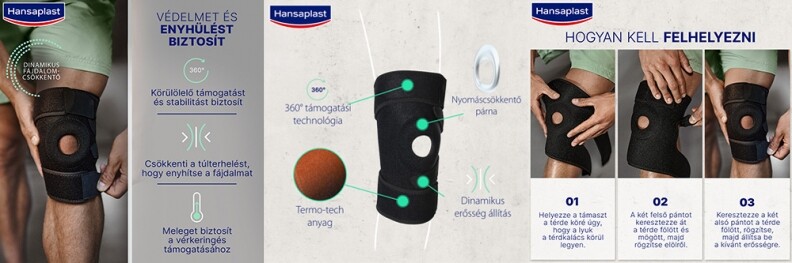 360°C Support Technológia révén stabilitást biztosít a térd számára. A termék csökkenti a térdet érő terhelést és enyhíti a fájdalmat.