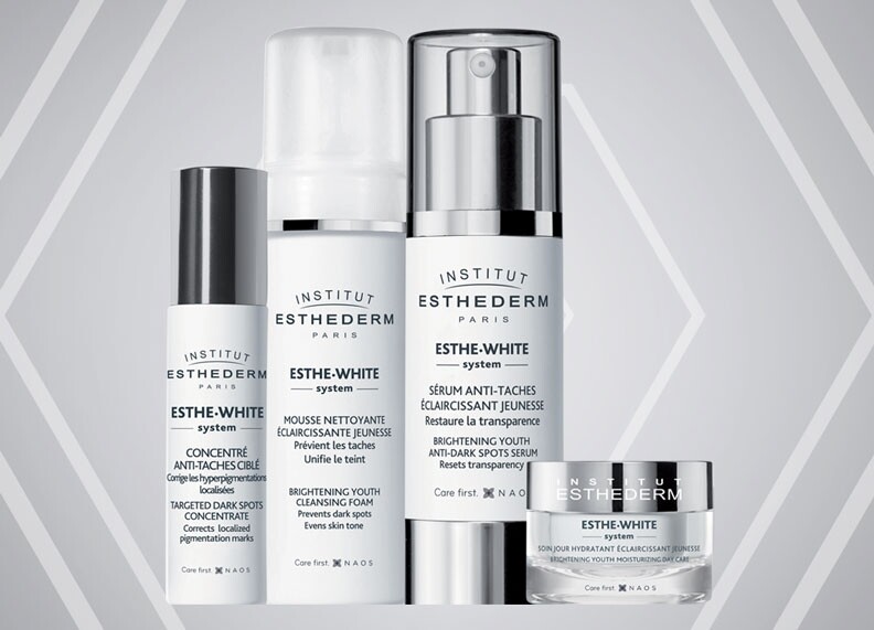 Látványos eredményt garantálva adja vissza a pigmentált bőr ragyogását. Termékcsaládunkban megtalálhatók az Institut Esthederm forradalmi szabadalmai, úgymint a Cellular water, a Hipopigmentáció, a Time Control System és az egyedülálló regeneráló technológia, valamint a citromsav is keratolikus hatóanyagként vesz részt a lokális pigmentfoltok halványításában. A tudományos kutatómunkával kifejlesztett és klinikai tesztekkel igazolt hatékonyságú szérum karnozin tartalma megakadályozza a pigmentfoltok elsárgulási folyamatát, amely idővel és a nap káros sugarainak hatására alakulhat ki. Az éjszakai és nappali krém tengeri exopoliszacharidot tartalmaz, amely visszaadja a bőr fényét és ragyogását. A nappali krémben megtaláljuk a Global Cellular Protection szabadalmat, amely optimalizálja a melanogenezis minden lépését, ezáltal természetesen védelmezi a bőrt a gyorsabb, mélyebb és hosszan tartó szín elérése érdekben.