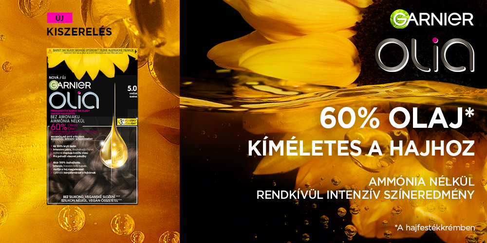 A Garnier szakértői felfedezték, hogy az olaj sokkal többre képes, mint egyszerűen a haj ápolására. Az Olia hajfestékkrém 60%-os természetes virágolaj tartalmával egy olyan különleges formula, mely festés közben ápolja a hajat, miközben kivételes színt, illetve akár 100% őszhajfedést nyújt. A természetes virágolajok segítenek, hogy a szín mélyen behatoljon a hajba, ezzel biztosítva az élénk, ragyogó és tartós színt. A színeredmény maximalizálása mellett az olajok táplálják is a hajat, látványosan javítva annak megjelenését festésről festésre.