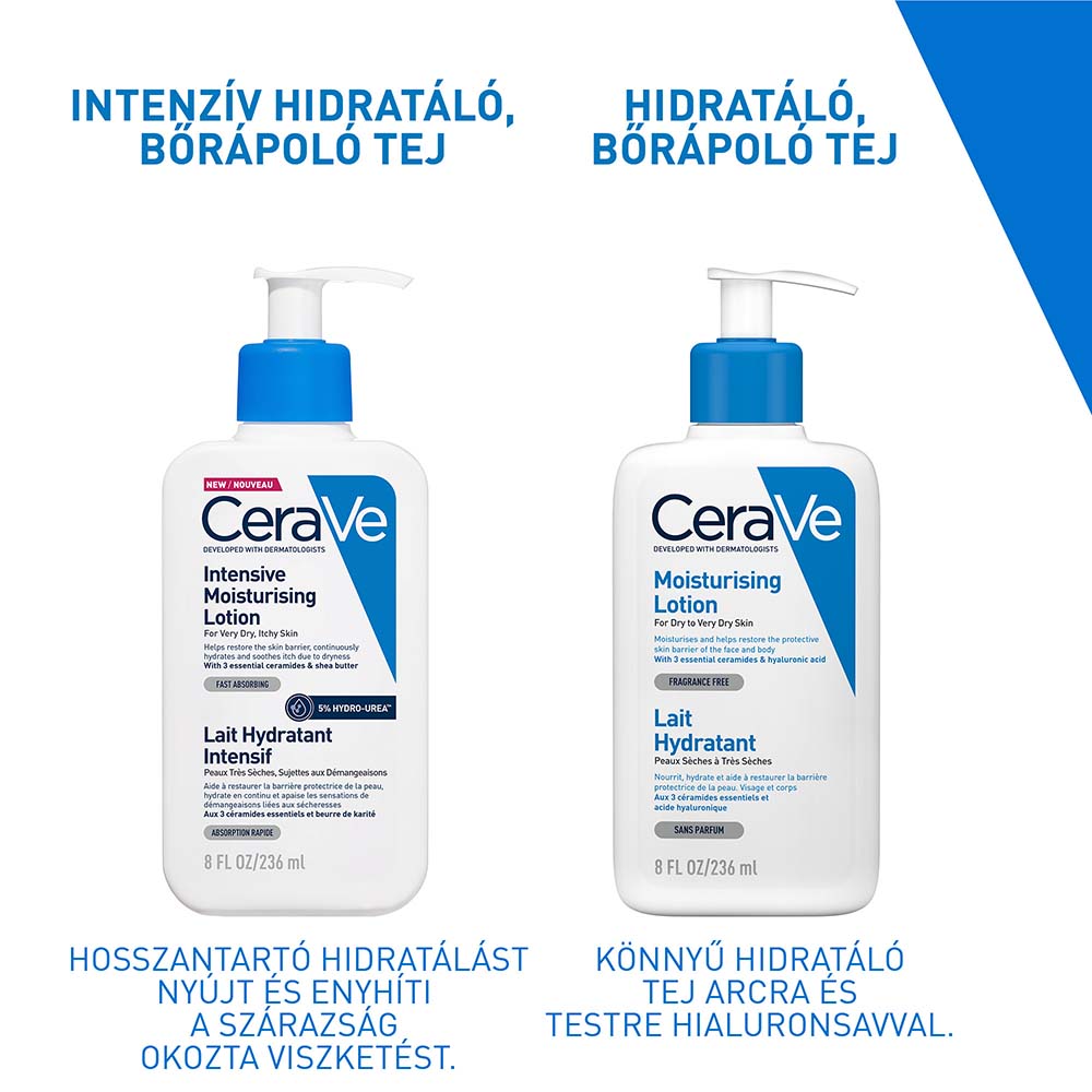 CERAVE intenzív hidratáló, testápoló tej nagyon száraz, viszkető bőrre. Hosszantartó hidratálást nyújt és enyhíti a szárazság okozta viszketést.