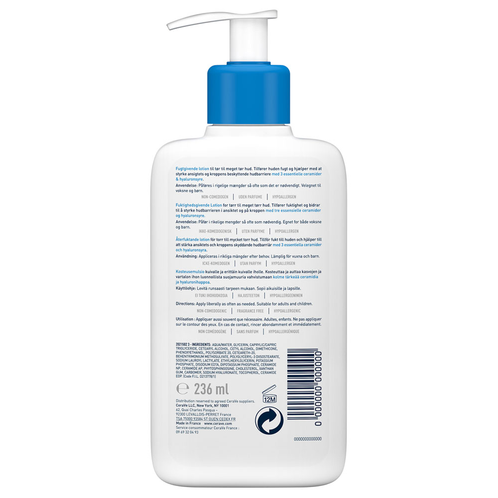 CeraVe Hidratáló bőrápoló tej (lotion) normál és száraz bőrre. Könnyű formulája tartósan hidratál, és 3 alapvető ceramiddal (1,3,6-II) segít egyensúlyba hozni a bőr természetes védőrétegét. A benne található hilauronsav biztosítja a bőr természetes nedvességtartalmának megőrzését.