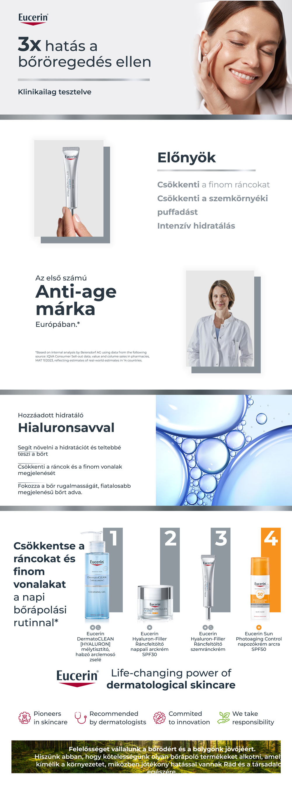 Ráncfeltöltő szemránckrém minden bőrtípusra ráncfeltöltő hialuronsavval valamint a bőr saját hialuronsav termelését elősegítő glicin-szaponinnal.