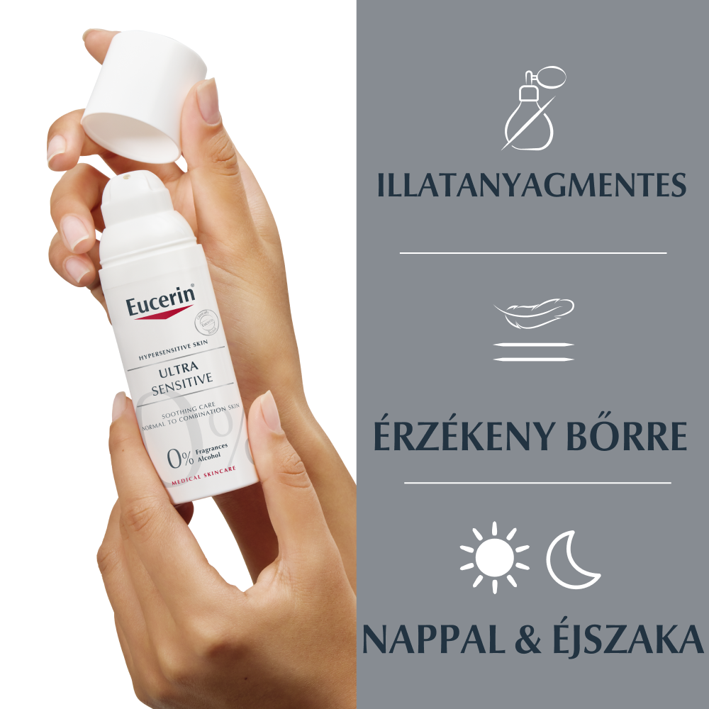 Az Eucerin® UltraSensitive arcápoló normál, vegyes bőrre termék használata hiperérzékeny bőrre ajánlott, ahol a bőr fő problémája a kellemetlen bőrérzet látható bőrpír nélkül.