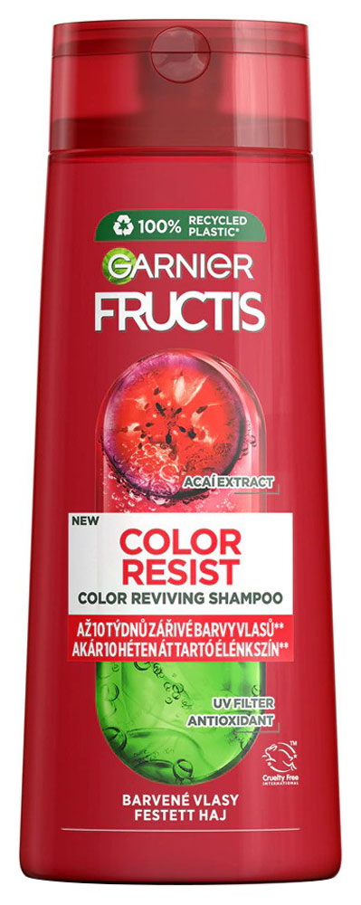 Új Fructis összetételek hajerősítő, aktív gyümölcskoncentrátummal. Gyümölcs- és növénykivonat származékok, B3- és B6-vitamin és citrom protein különleges kombinációja bizonyított hatékonysággal. Az erősebb hajért. A Color Resist ápoló program használatával hajszíned gyönyörűbbnek,ragyogóbbnak tűnhet és hajad puhább tapintásúnak érződhet.