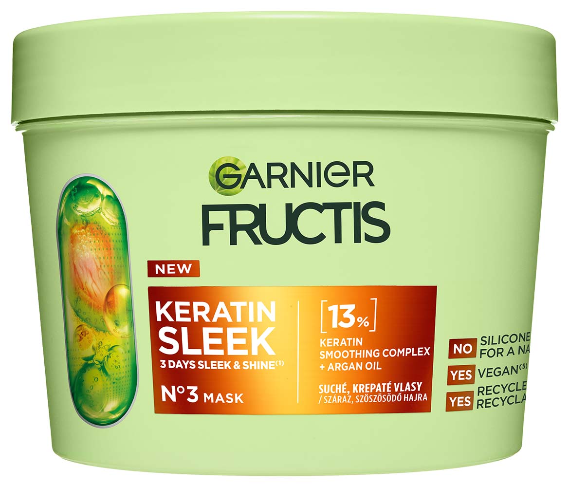GARNIERFructis Keratin Sleek Hajpakolás száraz, szöszösödő hajra 370 ml