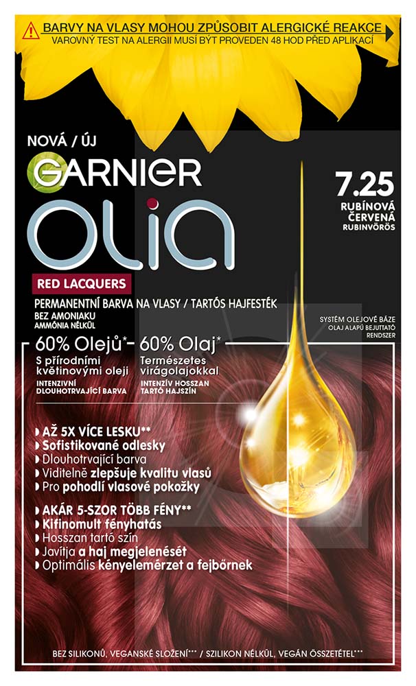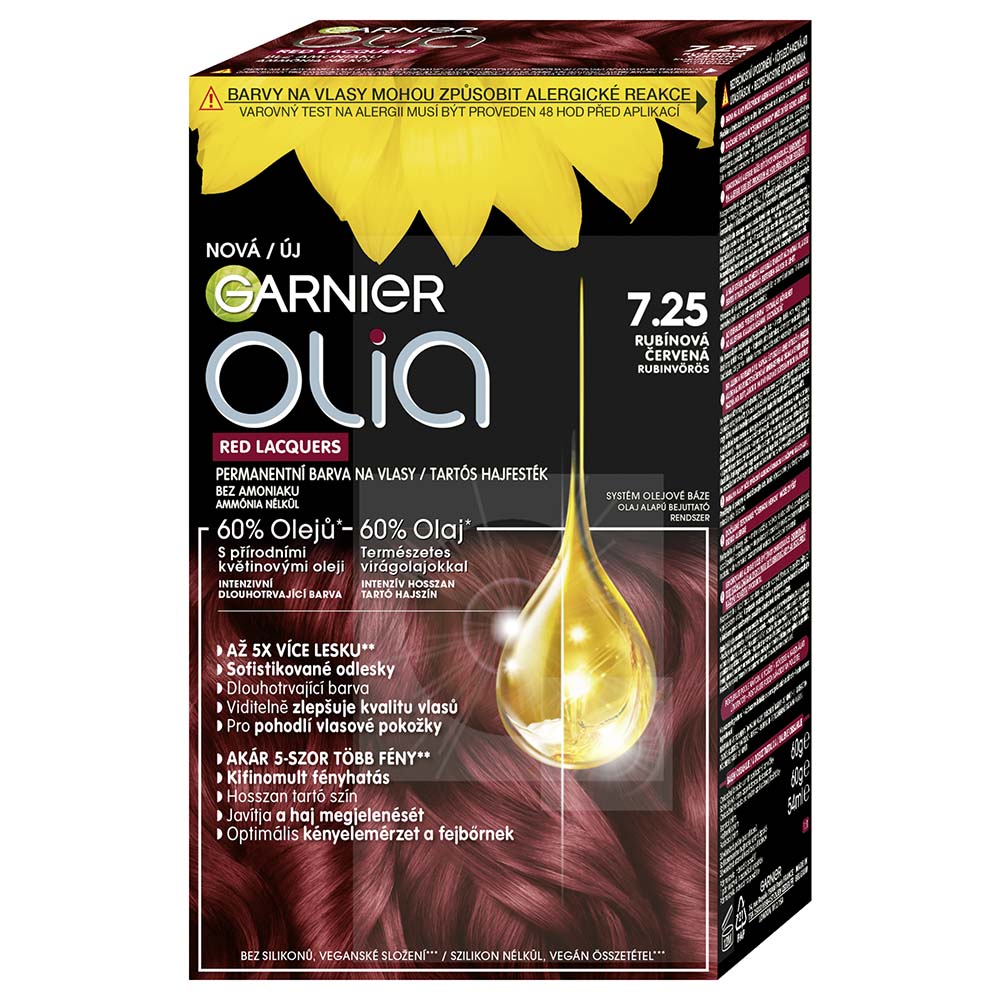 A Garnier Olia egy tartós hajfesték 60%-os olajtartalommal, ammónia és szilikonok nélkül. Olaj alapú bejuttató rendszer a festéket intenzíven a hajrost szívébe juttatja a rendkívül erőteljes színeredményért. A csomagolás immár applikátort is tartalmaz, amely megkönnyíti a felvitelt. Az Olia akár 100%-ban fedi az ősz hajszálakat. Intenzív ápolója láthatóan megszépíti a hajat és komfortérzetet nyújt a fejbőrnek.