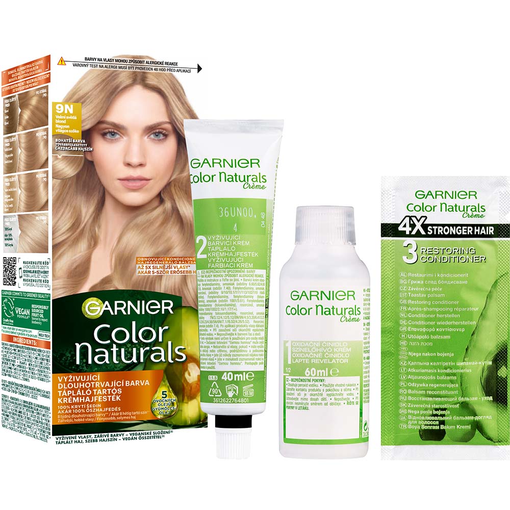 A Garnier Color Naturals Créme a Garnier első tápláló hajfestéke kettős védelemmel. A 3 tápláló, olajos összetevővel - olíva, avokádó és shea vaj - gazdagított ápoló formula intenzíven táplálja a hajat, simítja a hajszál felszínét és védőréteget képez a károsodás megelőzéséért, a haj fényességéért és puhaságáért. A második védelem a gazdagabb és tartósabb hajszínért a krémes összetétel, amely bejut a hajszálba és mély színnel tölti fel. Most gazdagabb, mint valaha. Kényeztesse a haját a 3 olajat tartalmazó utóápolónkkal! A hajszín gazdag és hosszan tart. Color Naturals most 20%-kal több tápláló hajápolóval a selymes és fényesebb hajért.