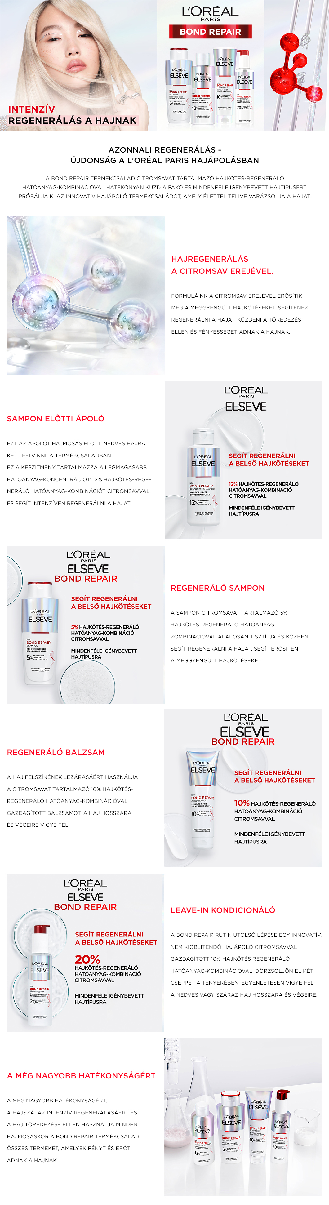 L'ORÉAL PARISElseve Bond Repair nem kiöblítendő szérum, a citromsav erejével 150 ml
