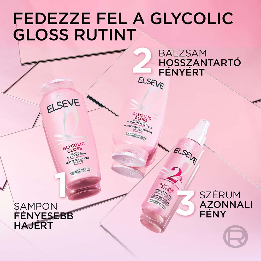 L’Oréal Paris Elseve Glycolic Gloss szérum A szérum könnyű állagú, gyorsan beszívódik, és már az első használat után láthatóan fényesebb, simább lesz tőle a haj. Nem hagy zsíros érzetet, nem nehezíti el a tincseket, így vékony szálú hajra is ideális. Hidratál, puhává teszi a hajvégeket, és segít megelőzni a töredezést. Az illata kellemes és hosszan megmarad. Előnye, hogy kis mennyiség is elegendő a hatáshoz, így gazdaságos. Hátrányt eddig nem tapasztaltam. Ajánlom mindenkinek, aki azonnali ragyogást és egészséges kinézetet szeretne a hajának. Az All2test.hu közreműködésével tesztelve