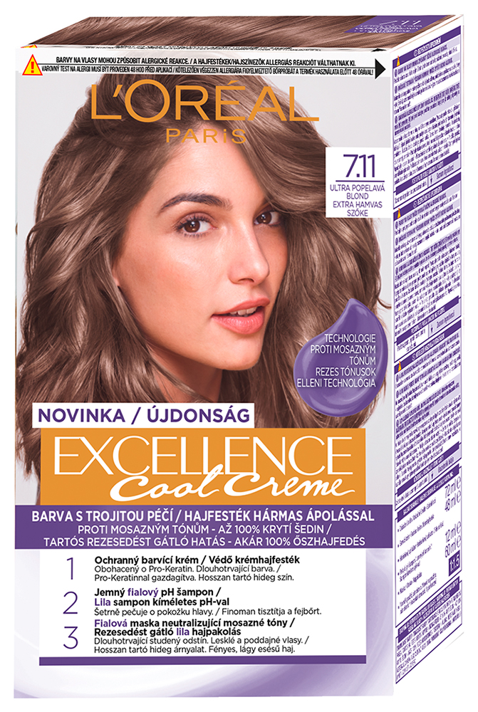 L'ORÉAL PARISExcellence krémes, tartós hajfesték Cool Créme 7.11 Extra Hamvas Szőke (176 ml)