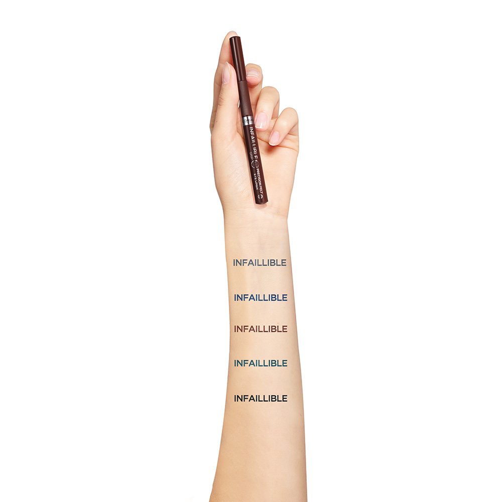 Infaillible Grip 27H Precision Filt szemceruza markolat technológiával, amely garantálja az egyszerű használatot és a tökéletes irányítást. Precíz és gazdag vonások a 0,4 mm vékony, precízen gyengéd ecsetvégnek köszönhetően még a legfinomabb vonalakhoz is. A szemceruza 27 órán át rendkívül ellenálló, átvitel-, elkenődés- és vízálló tulajdonságokkal.