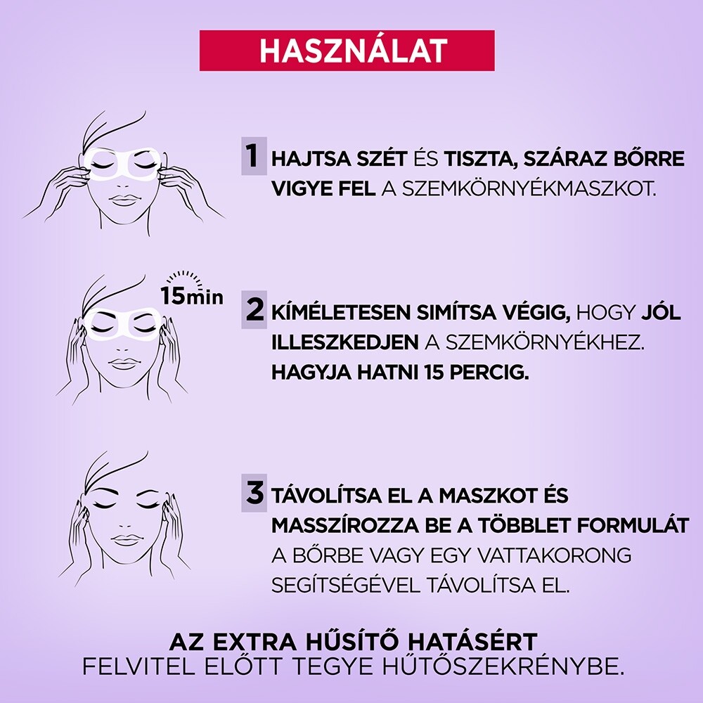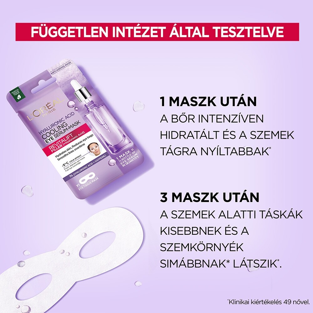L' Oréál Paris Revitalift Filler Coolling Eye Serum-mask Hialuronsavas maszk a szemkörnyékemre nagyon jó hatással volt.Láthatóan kisebbek lettek a ráncok. Mindenkinek csak ajánlani tudom.