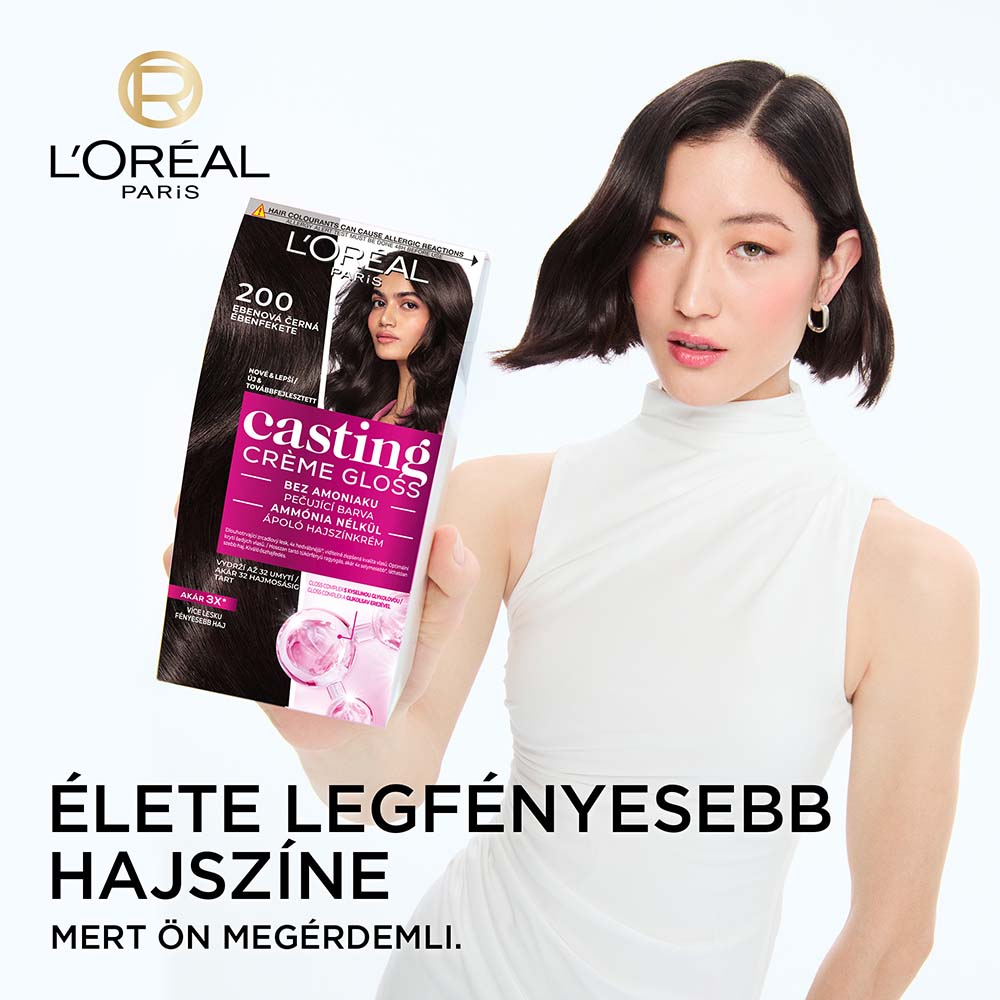 A L’Oréal Paris Casting Créme Gloss hajfestékkel otthona kényelmében ragyogó színt és gazdag fényt adhat a hajának. Fokozatos kimosódásának és szabadalmaztatott ápoló összetételének köszönhetően, mely meggátolja a haj sérülését, a hajszínét tetszése szerint bármikor nyugodtan megváltoztathatja.