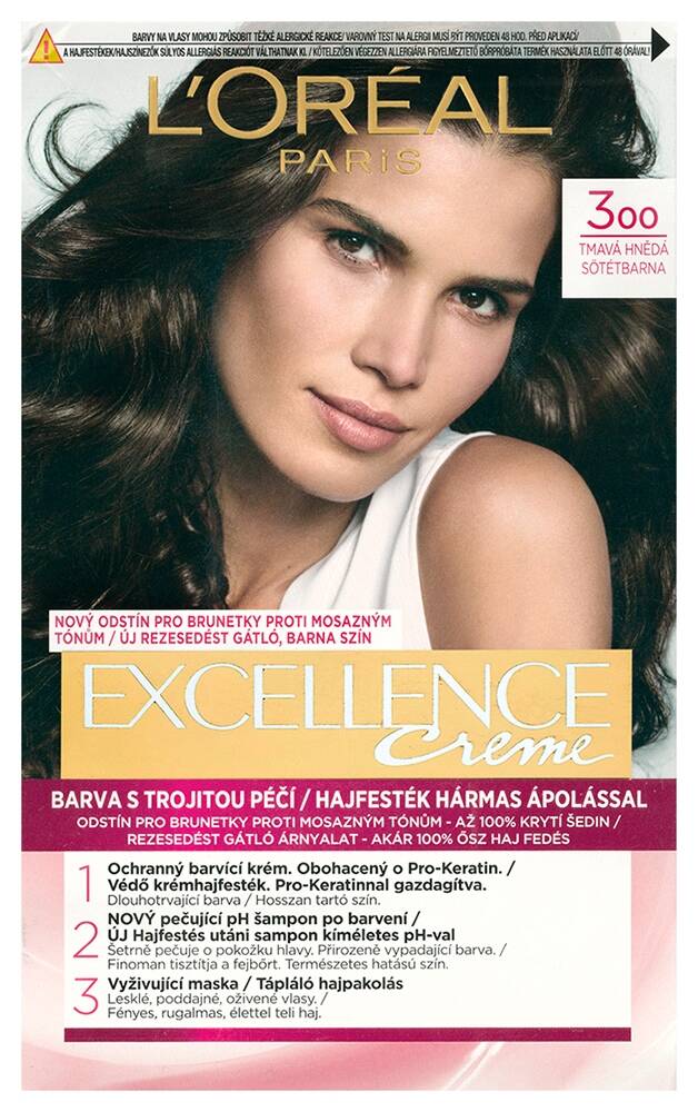 L'ORÉAL PARISExcellence krémes, tartós hajfesték 3 sötétbarna (176 ml)