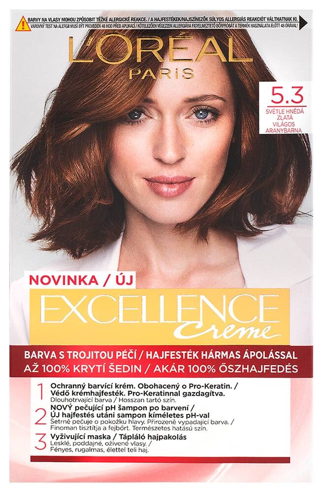 L'ORÉAL PARISExcellence krémes, tartós hajfesték 5.3 aranybarna (192 ml)