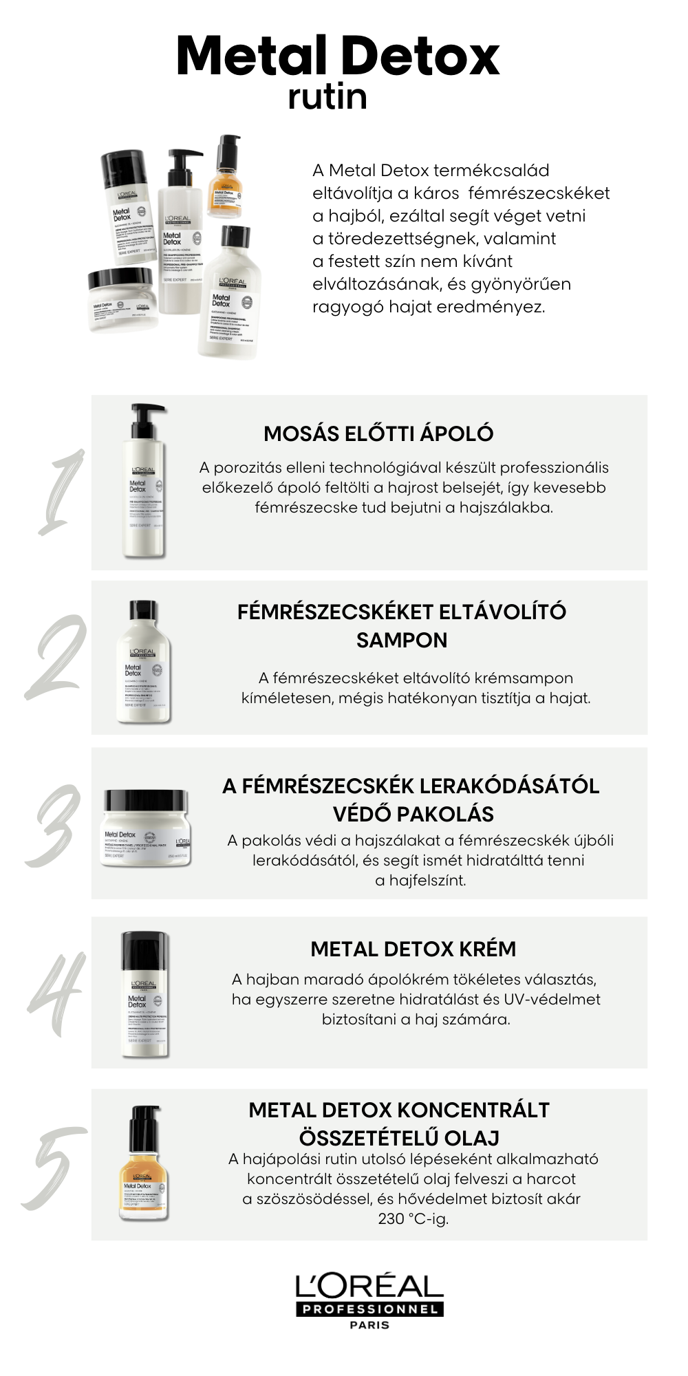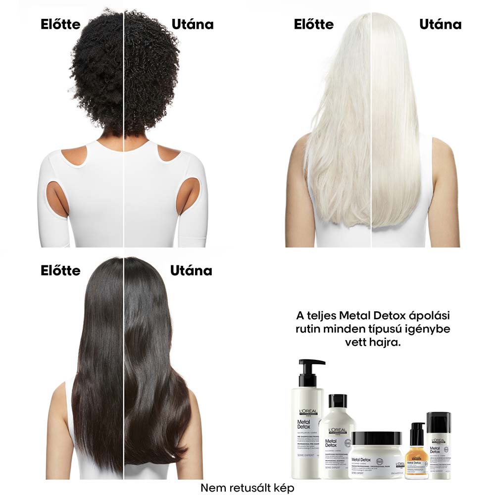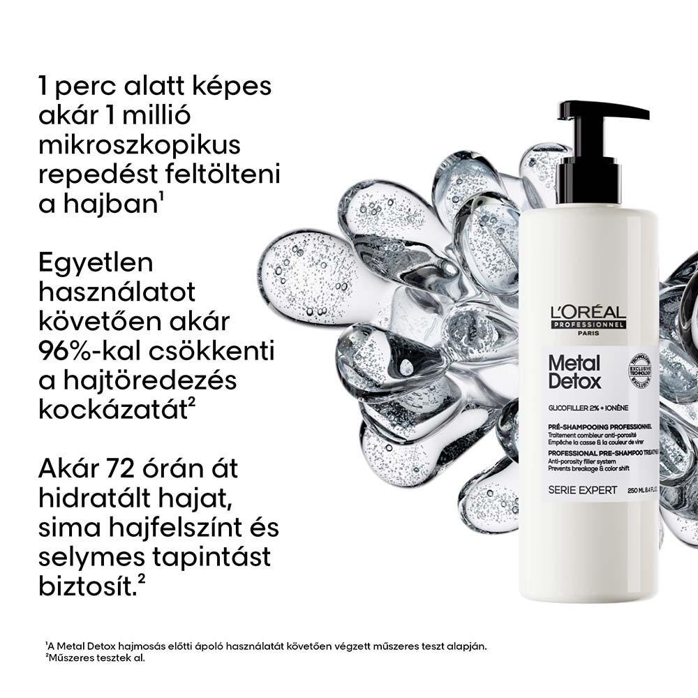 ¹ A Metal Detox mosás előtti ápoló, sampon, pakolás és olaj 10-szer ismételt együttes alkalmazását követően végzett műszeres teszt alapján.