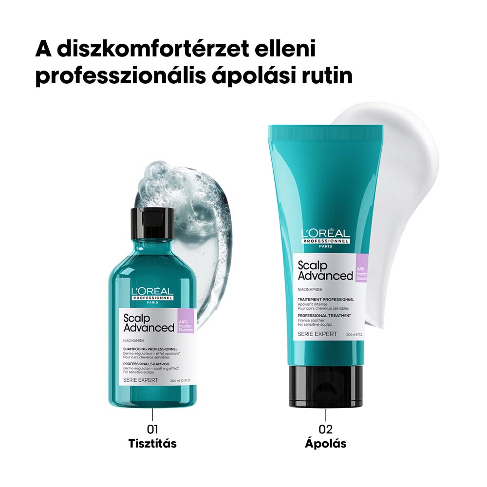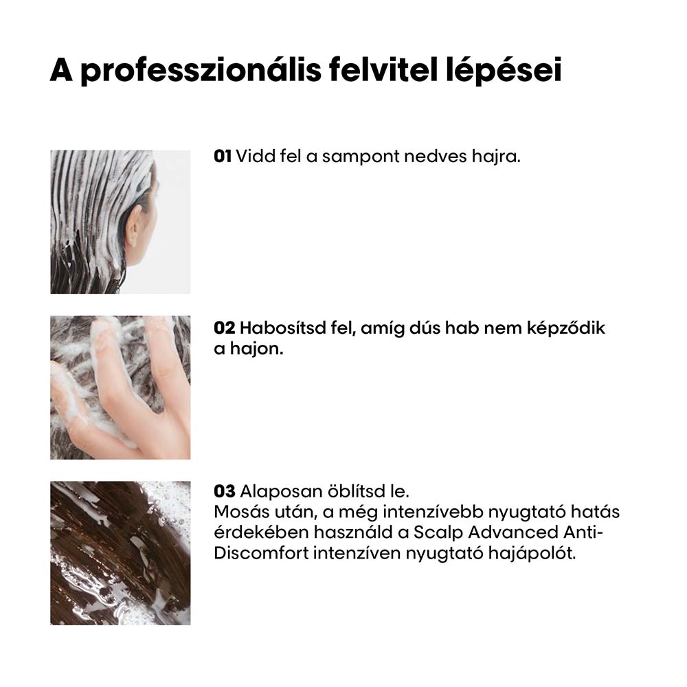 Mosás után, a még intenzívebb nyugtató hatás érdekében használjon Scalp Advanced Anti-Discomfort Intense soother intenzív nyugtató hajápolót is. A Scalp Advanced termékek a Série Expert termékcsalád bármely termékével kombinálhatók.
