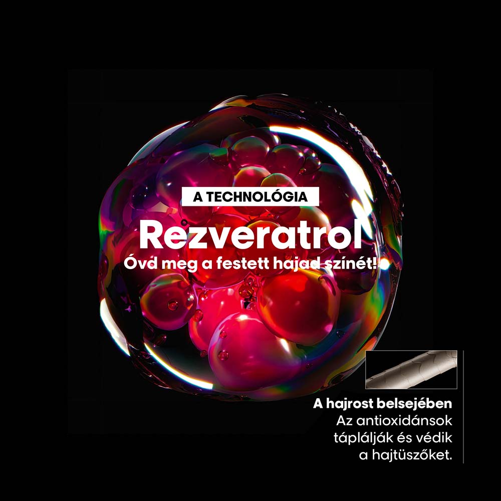 Bőrápoló kozmetikumok által inspirált, hatékony antioxidáns összetevőt, resveratrolt tartalmaz a hajszín tökéletes védelméért.