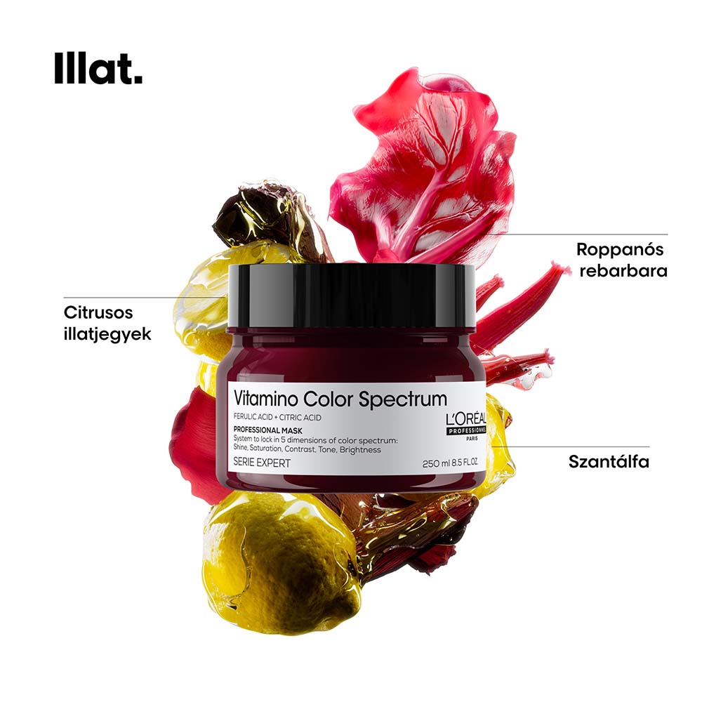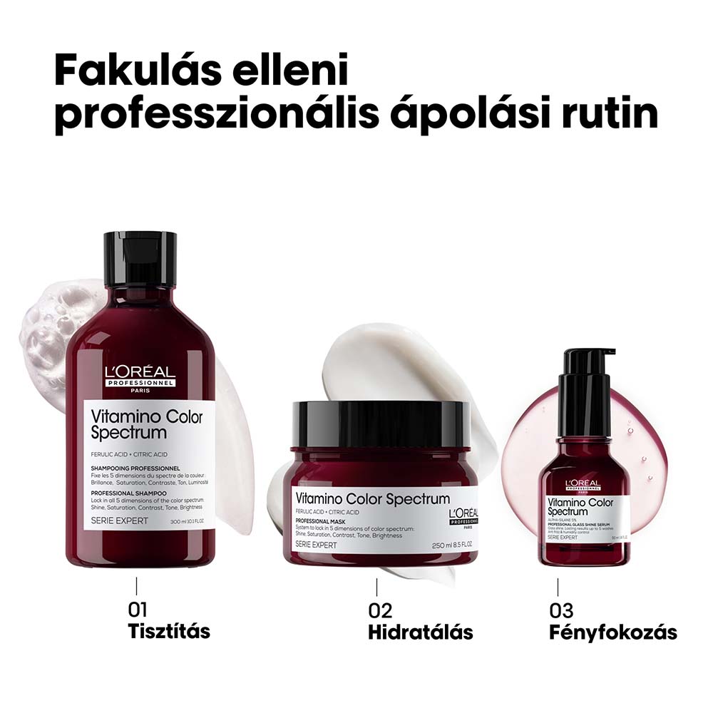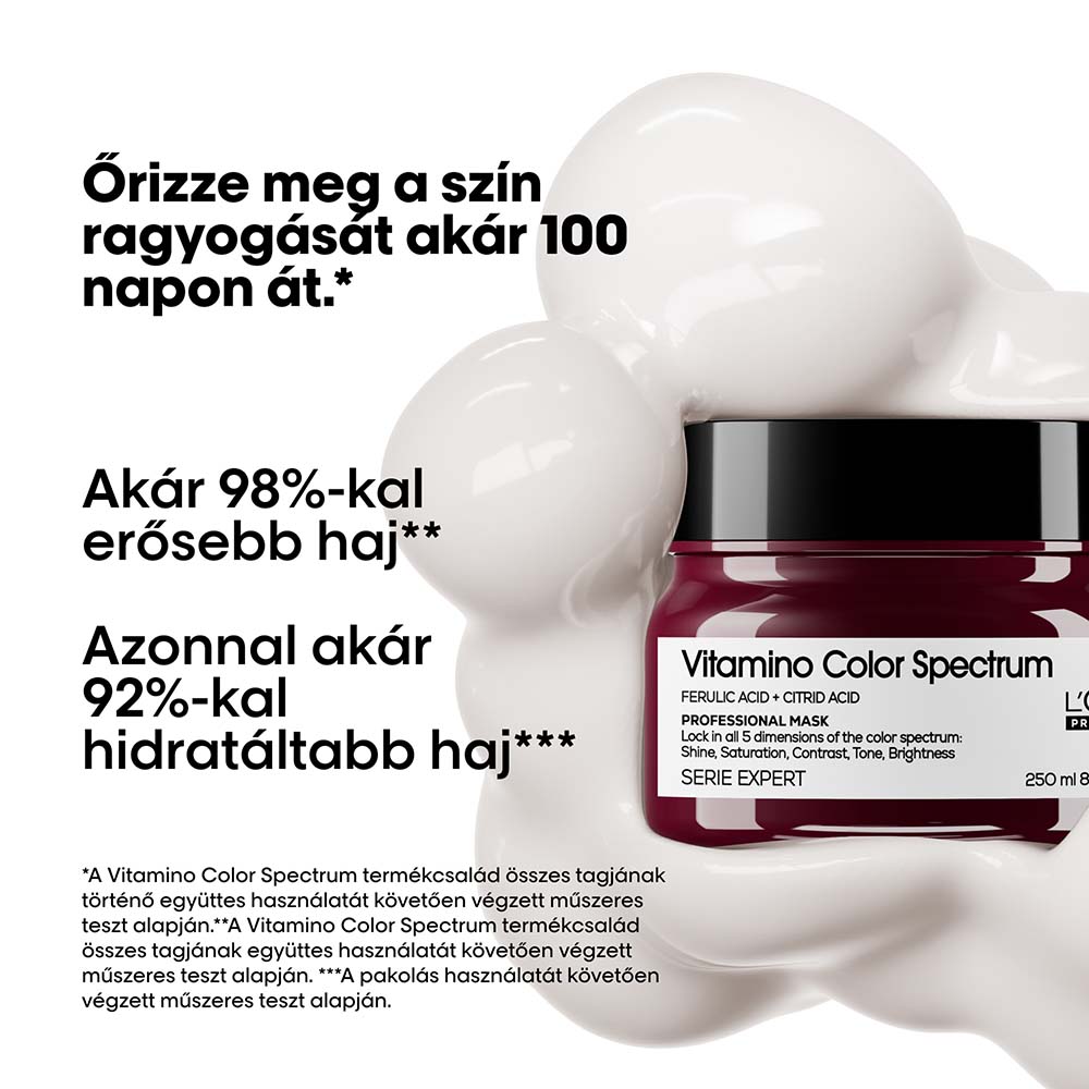 Ferulinsavval és citromsavval gazdagított professzionális Vitamino Color Spectrum pakolás a L’Oréal Professionneltől.