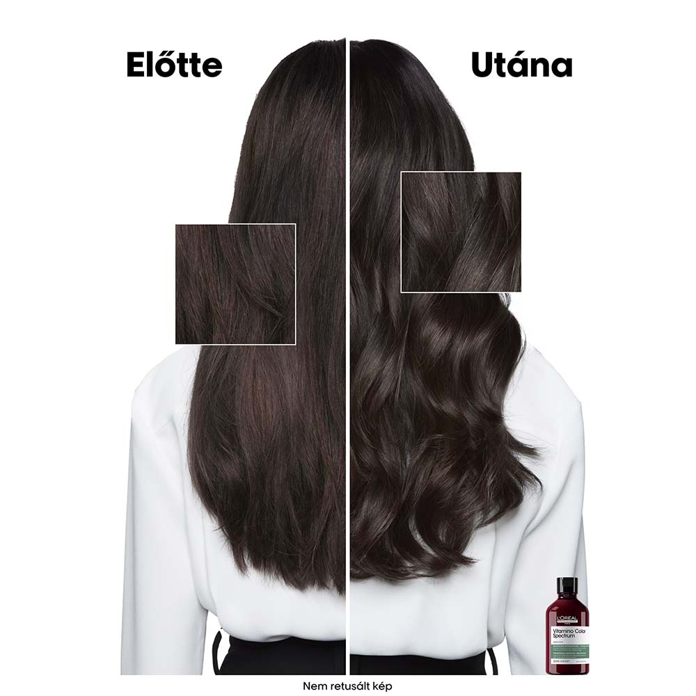 Zöld festékanyagokkal és ápoló hatóanyagokkal gazdagított Vitamino Color Spectrum professzionális színsemlegesítő sampon a nem kívánt vörös árnyalatok ellen a L’Oréal Professionneltől. A krémes, zöld színű termék azonnal semlegesíti a sötétbarna haj szőkítési alapjának nem kívánt vörös pigmentjeit. Tisztítja és táplálja a hajat. Segít megőrizni a színtónust.* A haj azonnal akár 62%-kal selymesebb.** A haj azonnal akár 66%-kal tápláltabb.** Akár 74%-kal erősebb haj.**