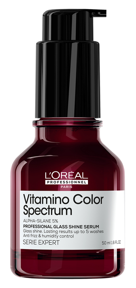 5% Alpha-silane hatóanyaggal gazdagított, tükörfényű ragyogást biztosító professzionális Vitamino Color Spectrum fényszérum a L’Oréal Professionneltől. Márkánk szabadalmaztatott hajban maradó széruma azonnal tükörfényű ragyogást és akár 10 mosásig megmaradó eredményeket biztosít**. A víz hozzáadása nélkül előállított Alpha-silane egy olyan ápoló hatóanyag, amely hőre aktivált védőpajzsot képez a hajrost felszínén.