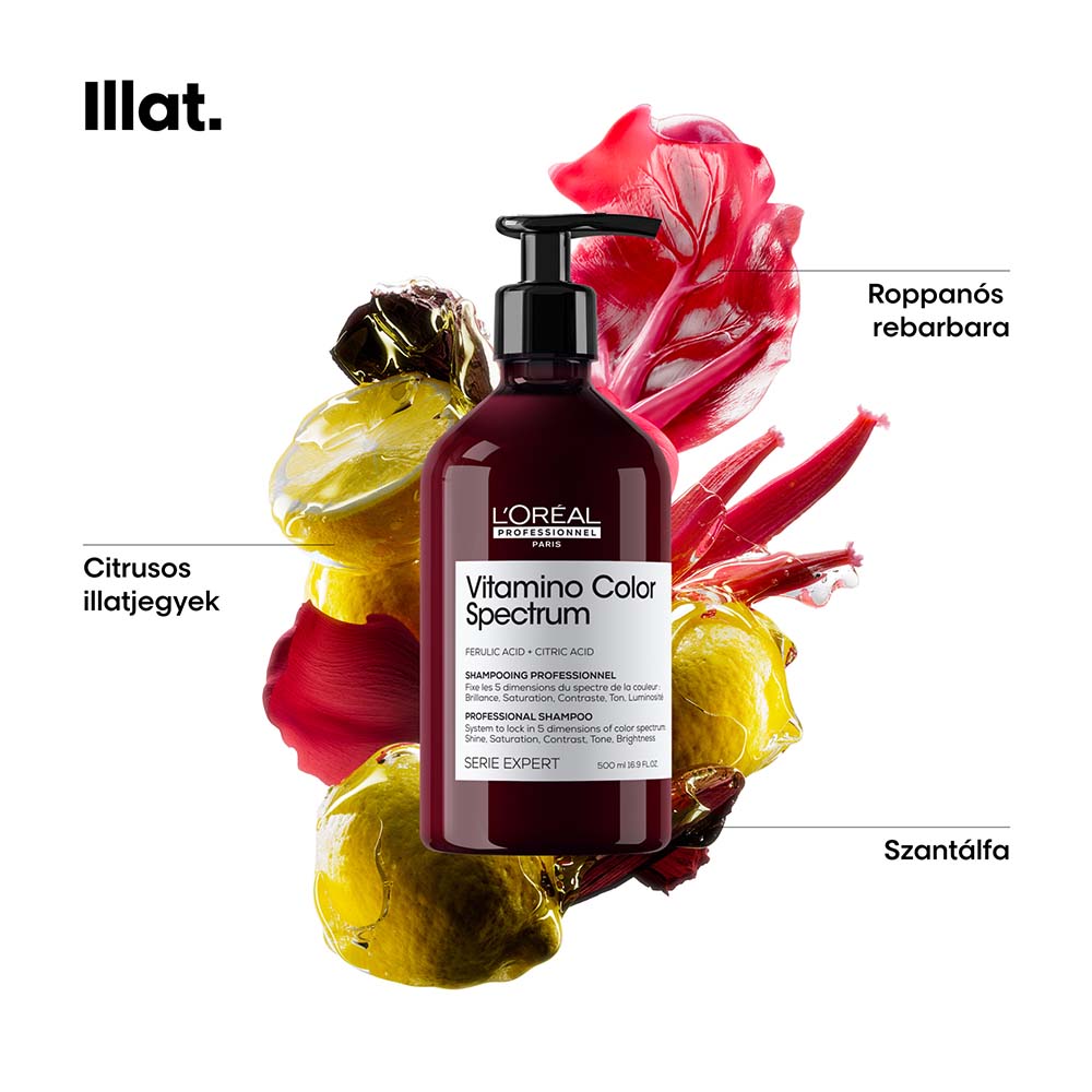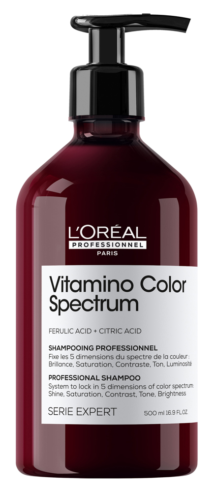 Ferulinsavval és citromsavval gazdagított professzionális Vitamino Color Spectrum sampon a L’Oréal Professionneltől.