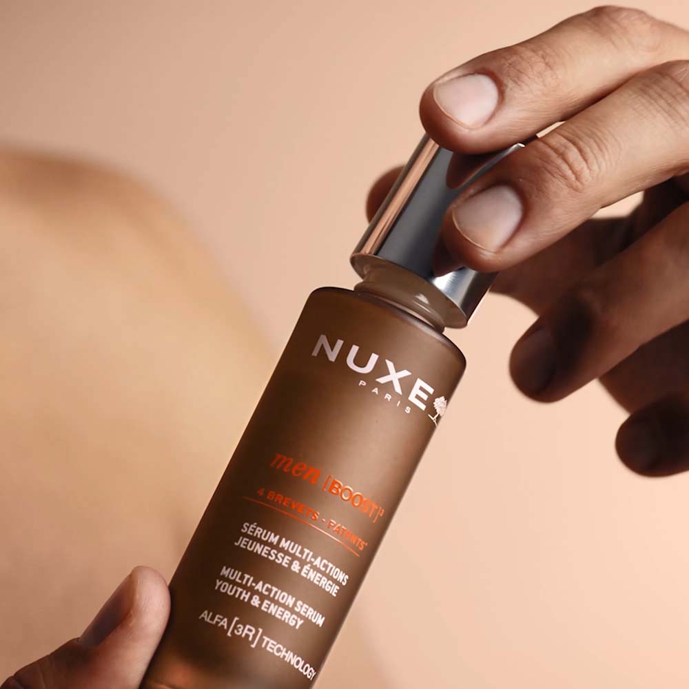 NUXE Men [BOOST]³, a szakértő termékcsalád, amely a hatékonyságot és az érzéki élményt ötvözi, hogy felfedje bőröd teljes erejét. Szabadalmaztatott kőrisfa-olajkivonattal gazdagítva. Kiegészítésként az ALFA [3R]⁽¹⁾ technológia – amely hatékonyabb, mint a retinol⁽²⁾ – revitalizálja, regenerálja és kisimítja a bőrt.