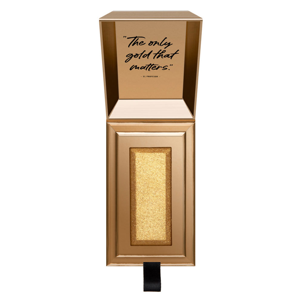 Végre Te is magadénak tudhatsz egy aranyrudat. Fürödj Te is krémes és szuper pigmentált highlighterben egésznap, amely 2 árnyalatban érhető el. Párosítsd a limitált kiadású arcformázó ecsetünkkel és máris megvan mindened amire szükséged lehet a végső lázadó megjelenéshez. A finom és selymesen puha formulának köszönhetően könnyedén kiemelheted arcod vonásait vagy bronzosíthatod azt. A formulája annyira fényes, hogy a hírhedt vezető ’El Professor’ szavaival élve „Az egyetlen arany, ami számít”.