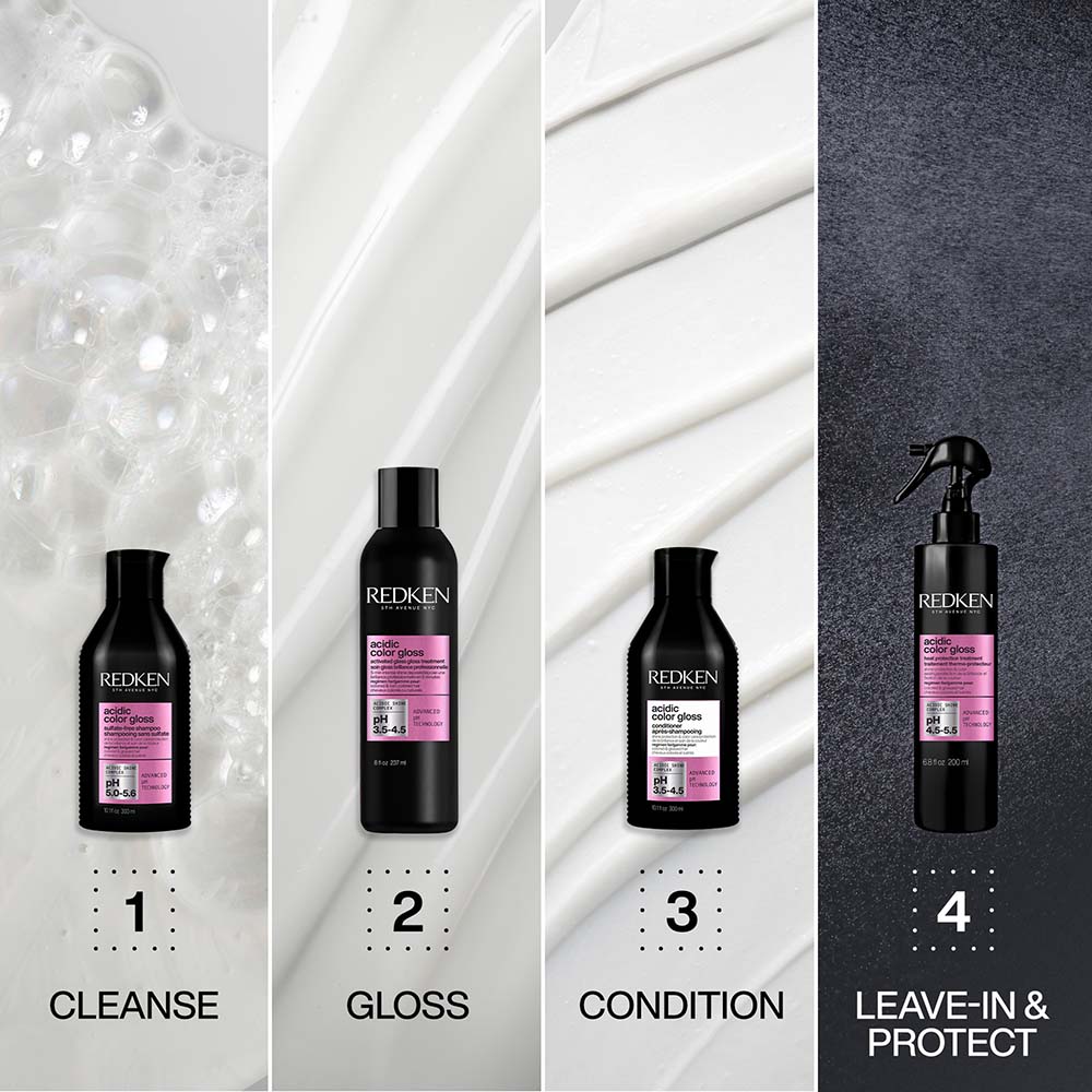 A Redken Acidic Color Gloss hővédő spray helyreállítja a haj pH-értékét, valamint segít lezárni a kutikulát, miközben molekuláris szinten ápolja a hajat, hogy páratlan ragyogást biztosítson a számára. Ez a hajban maradó hővédő spray láthatatlan védőpajzsot képez a hajszálakon, amely hatékonyan védi a festett hajat a hőtől (akár 230 °C-ig), a hajszín fakulásától, valamint a ragyogás elvesztésétől. Keltsétek új életre hajatokat és biztosítsatok számára káprázatos ragyogását az Acidic Color Gloss hajban maradó hővédő ápolóval!