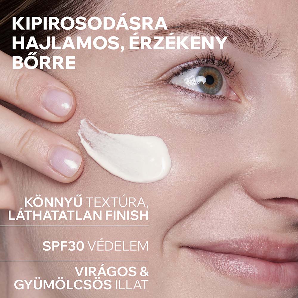 UVA/ UVB védelemmel ellátott, nyugtató, védő krém kipiruló és/vagy látható hajszálerekkel átszőtt érzékeny arcbőrre.