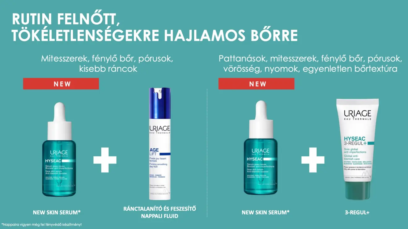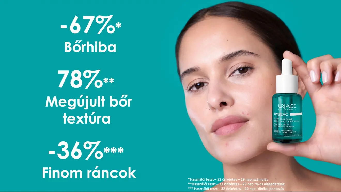 Az Uriage Laboratórium négy szabadalmaztatott hatóanyagával, továbbá a Cink és az Uriage termálvíz együttes hatásával a bőrhibák, mint mitesszerek, tág pórusok, foltok, finom barázdák és azok visszatérése ellen. Egyaránt ajánlott a tinédzserkori bőrhibák és felnőttkorban stresszes életmód miatt kialakuló bőrhibák kezelésére is. Az 5,8% tiszta AHA komplex kíméletes mikrohámlasztó hatásával a bőr simábbá és finomabb textúrájúvá válik, és serkenti a bőr megújulását a bőrhibák minél gyorsabb csökkenése érdekében.