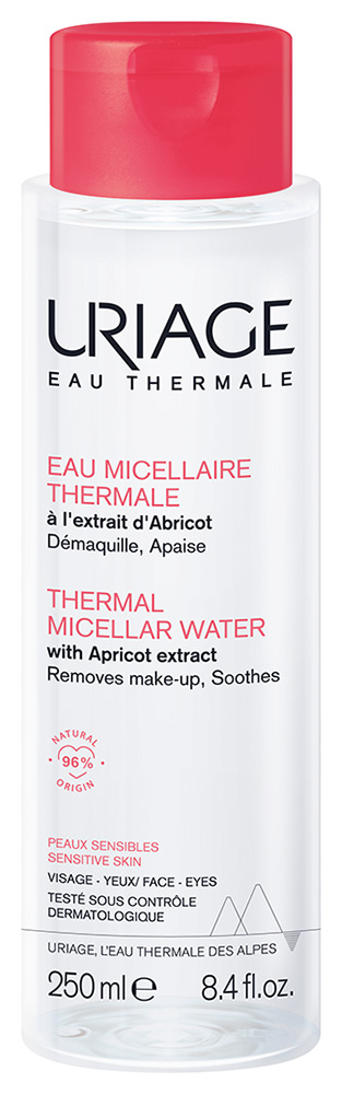 URIAGE TERMÁL Micellás arctisztító és sminklemosó érzékeny bőrre, Uriage termálvízzel és sárgabarack kivonattal. Eltávolítja a sminket, nyugtatja a bőrt. Arc és szemkörnyék kíméletes tisztítására.