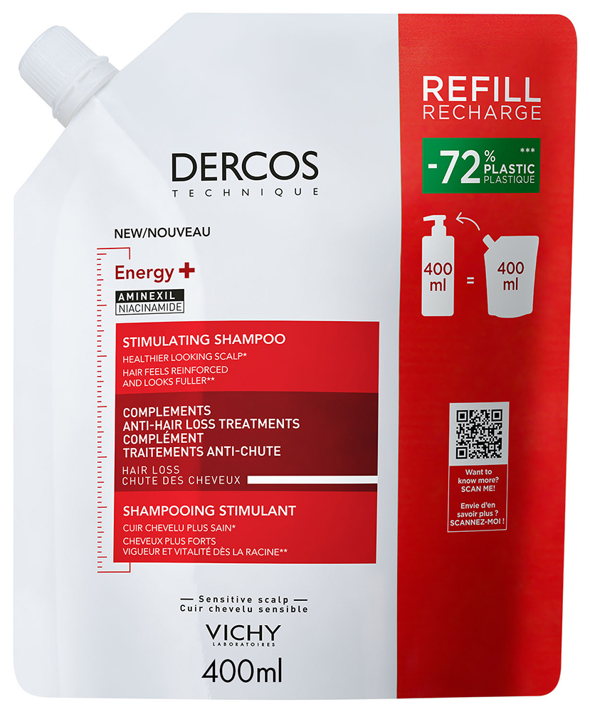 VICHYDercos Energy+ Energiát adó sampon hajhullás ellen utántöltő 400 ml