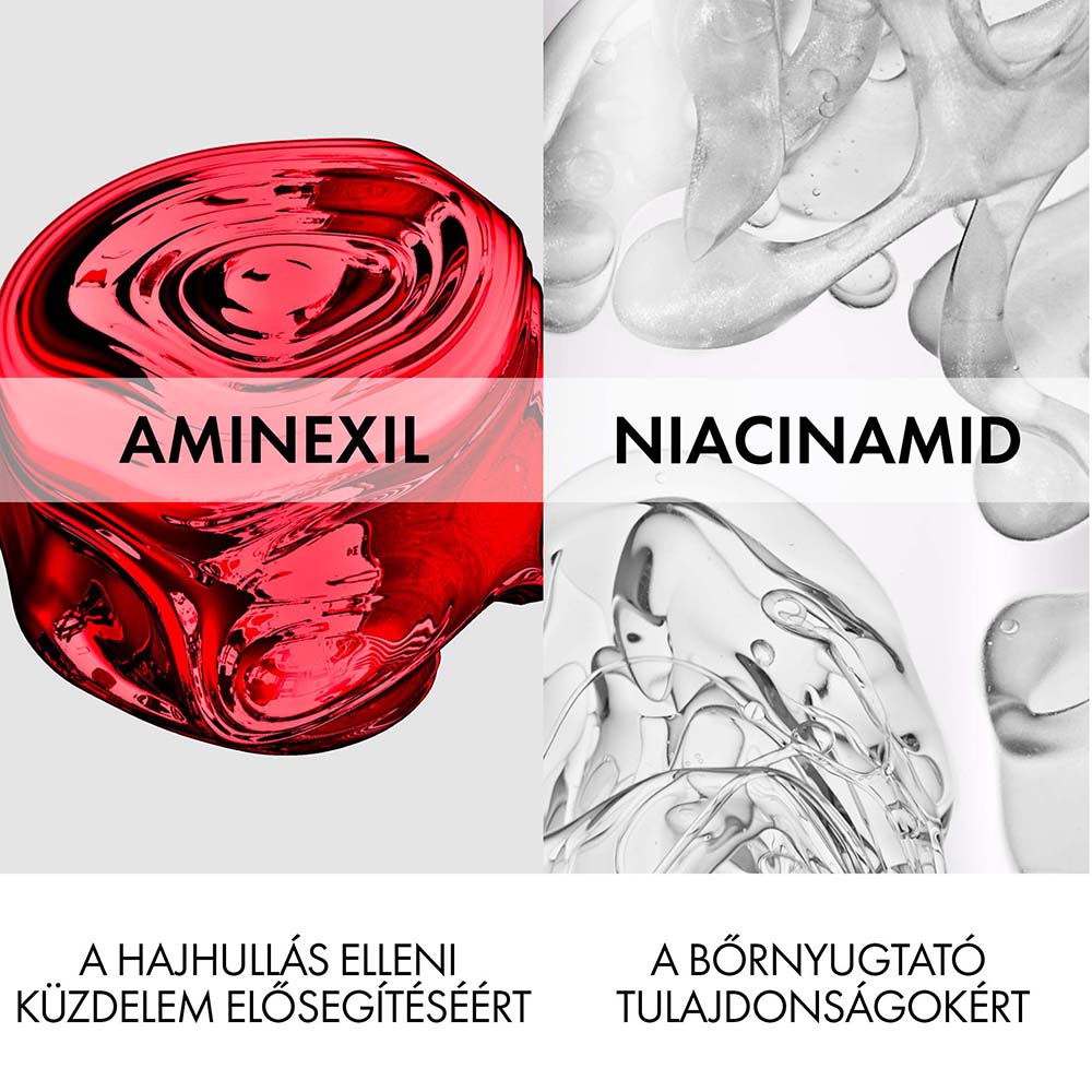 VICHY DERCOS Energy+ stimuláló sampon hajhullás ellen kezeléseket AMINEXIL + NIACINAMID + AHA + E VITAMIN tartalmú.